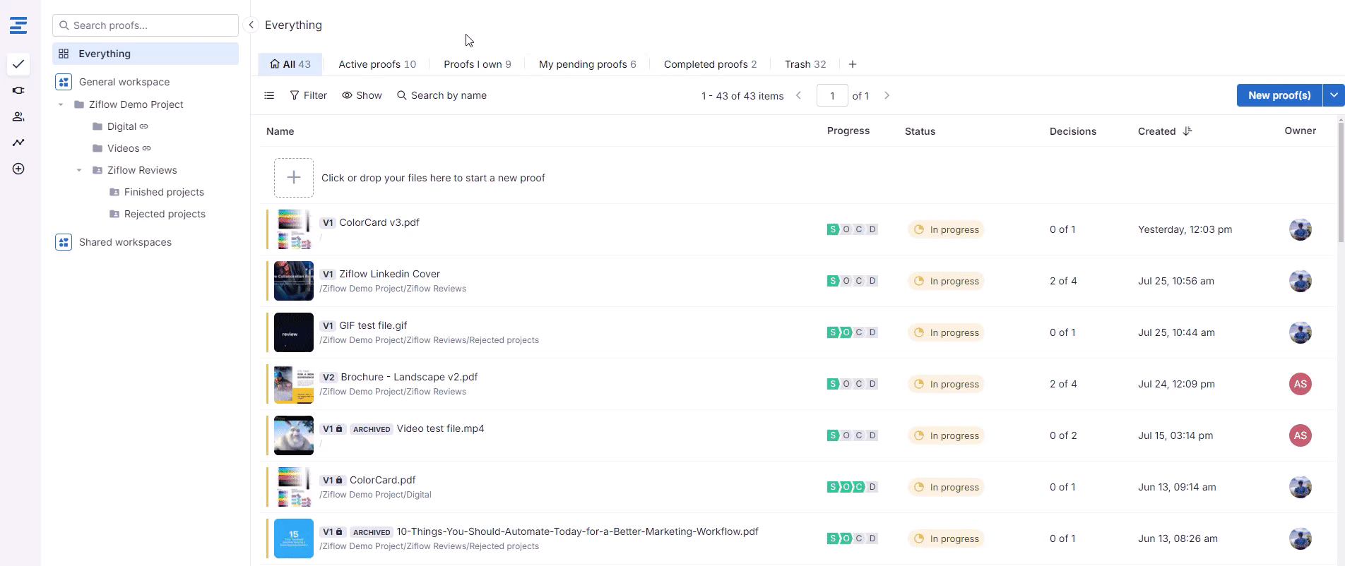 Starting today, clicking to open a "folder shareable link" will now launch Proof Viewer in an all new, all-interactive Gallery View. Users can click into individual proofs within the folder, provide feedback, and approve proofs—all while the folder view itself remains locked to the left side of the browser. Clicking a different asset in the folder will open that asset in the main “viewer”, where you can leave comments, make a decision, and move onto the next asset. Clicking the “X” in the top corner of the primary proofing window send you back to the Gallery View of the folder where you can access a new asset or dive deeper into a project’s subfolders.