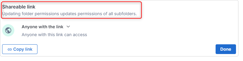 When changing access settings, a message has been added to the folder sharing modal that reads: “Updating folder permissions updates permissions of all subfolders”, ensuring all users will be aware of the repercussions of changing access levels.