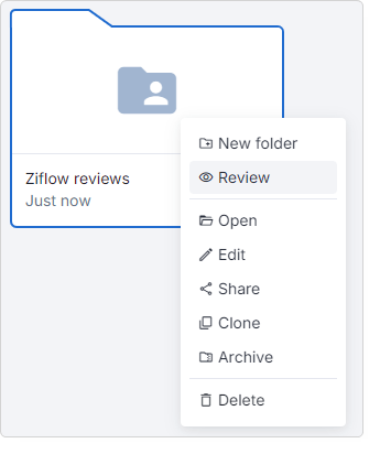 Update to Ziflow’s Dashboard: New “Review” action in folder context menus