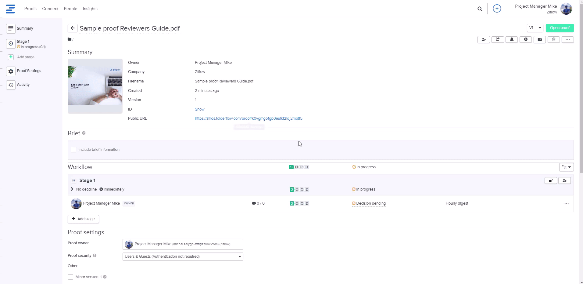 Test if the proof works by submitting a proof in Ziflow
