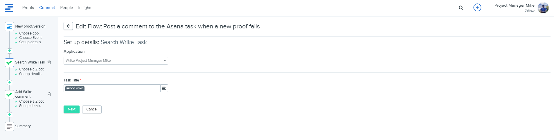 1. Create Wrike tasks for newly created proofs in Ziflow