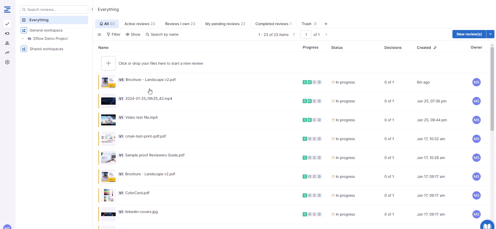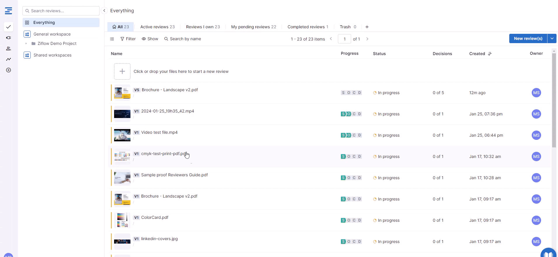 Note: This is stage one of a two-part update. User avatars in email notifications and hourly digests, Ziflow’s Dashboard and other areas where avatars are displayed will retain the “grey circle” behavior. An upcoming feature release will standardize the color of an avatar across all other aspects of the software.