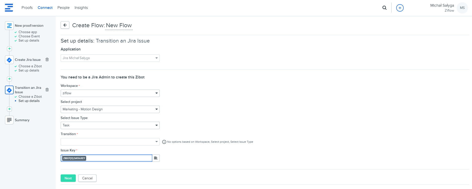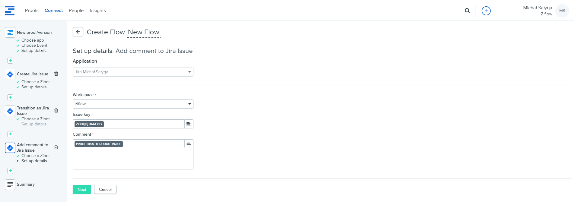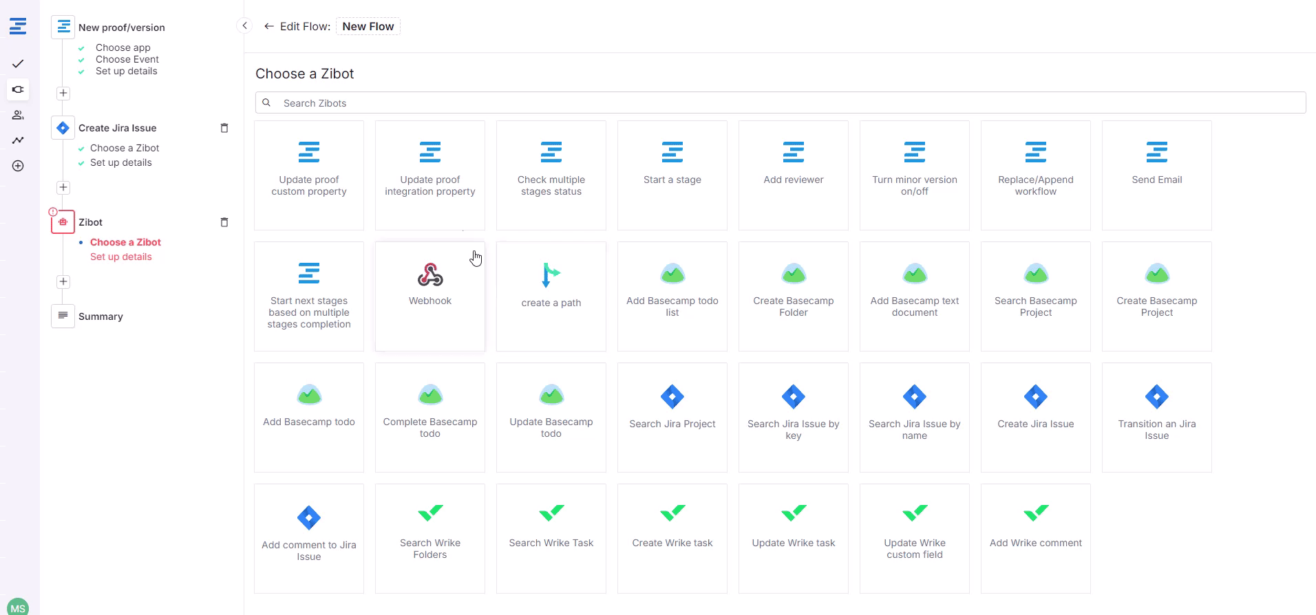 Once Ziflow and Jira are connected, you can set up automated flows to send information to Jira.