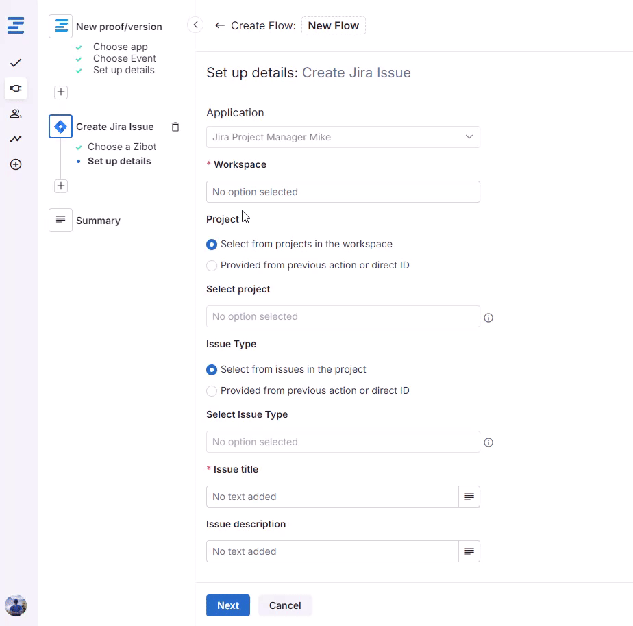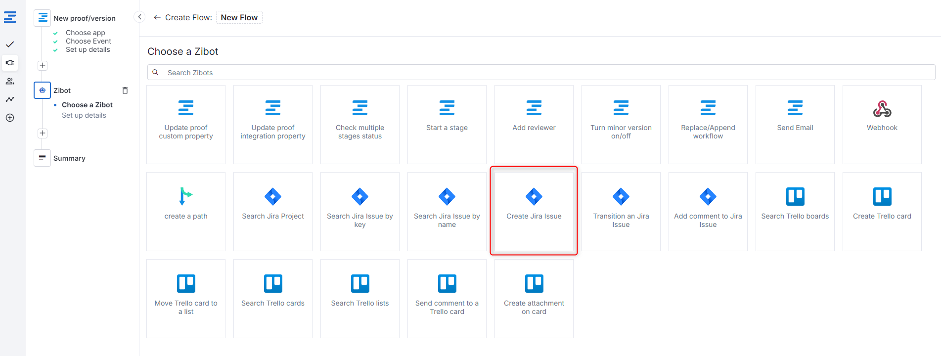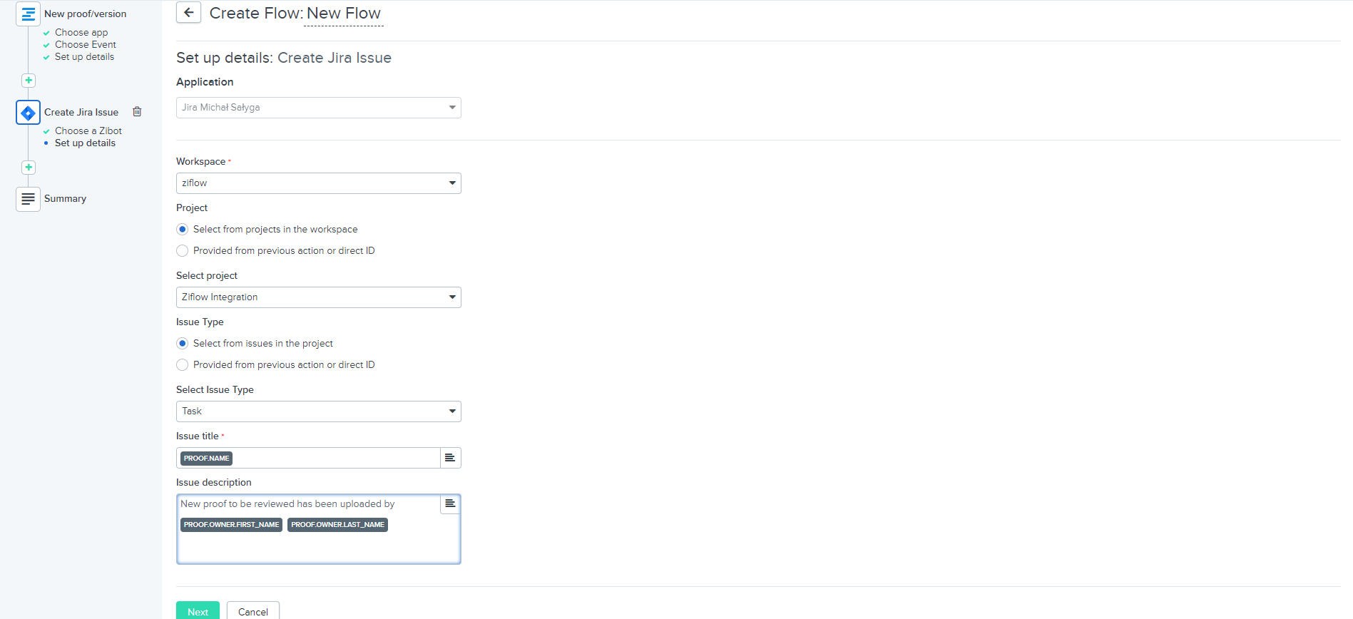 Add a new Jira issue and populate application fields upon new proof creation in Ziflow