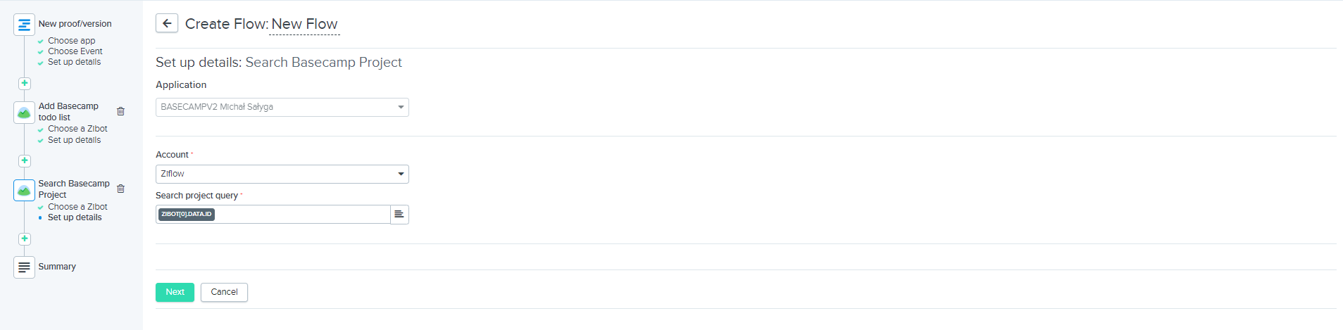 Before you start configuring the flow, please make sure to read the Ziflow internal Zibots article. This step is necessary because you need to connect Ziflow as an internal application in order to use it to update proofs.