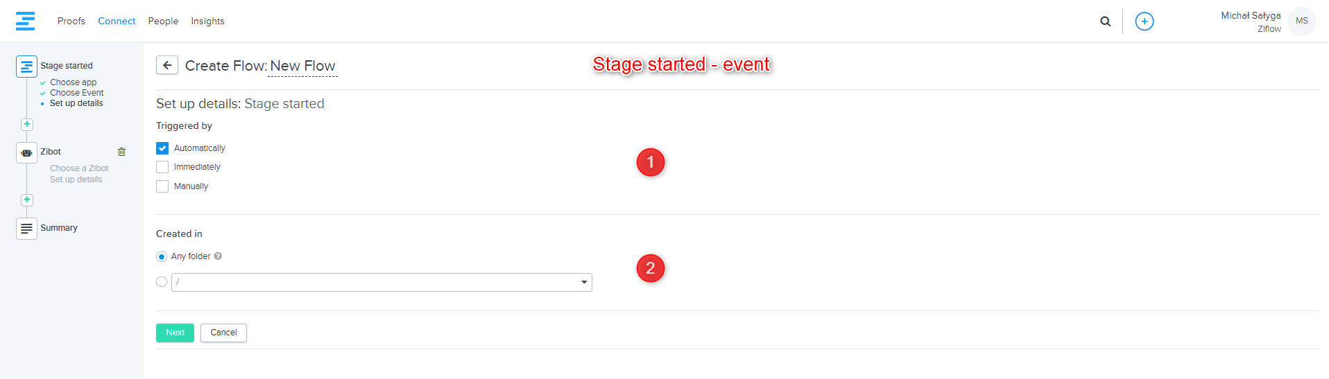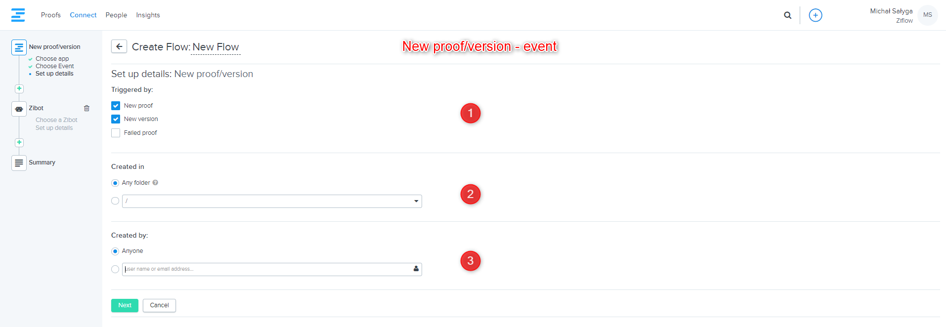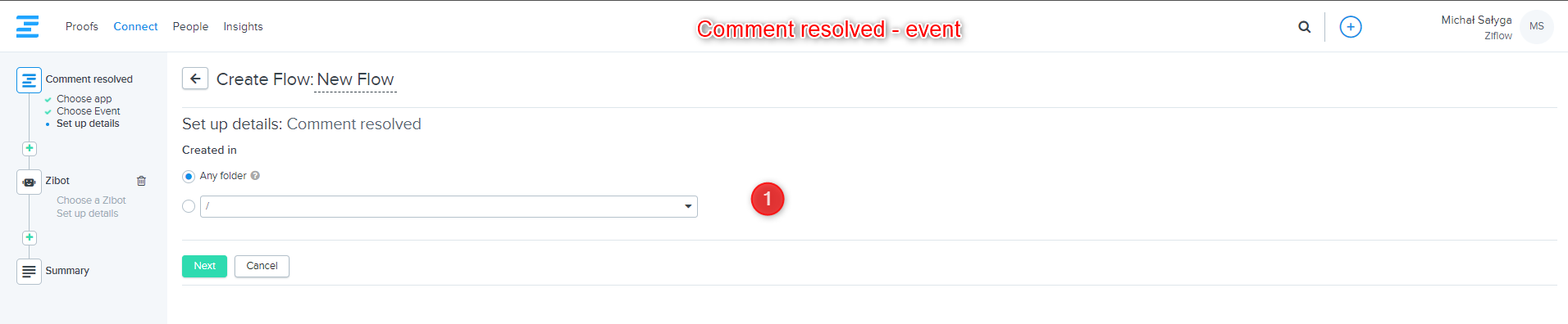 Created in - select the Ziflow folder that is going to be monitored by this flow.