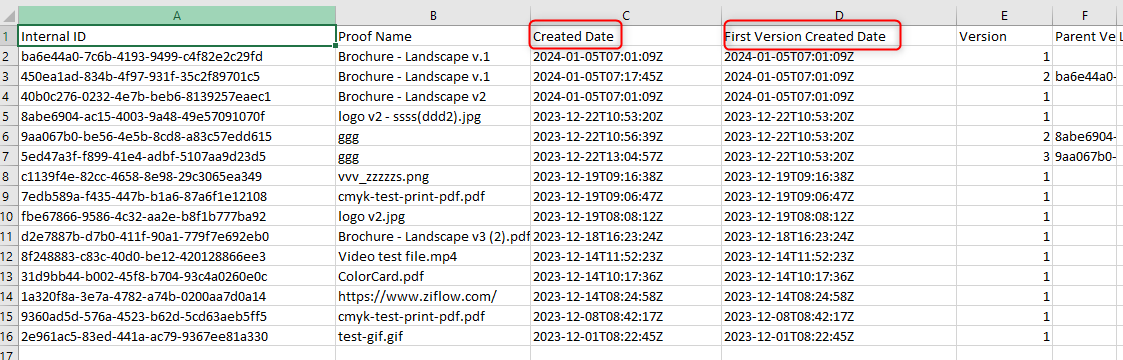 When using the export proofs to CSV feature in Ziflow, you'll notice two similar fields, but the values they refer to are different.