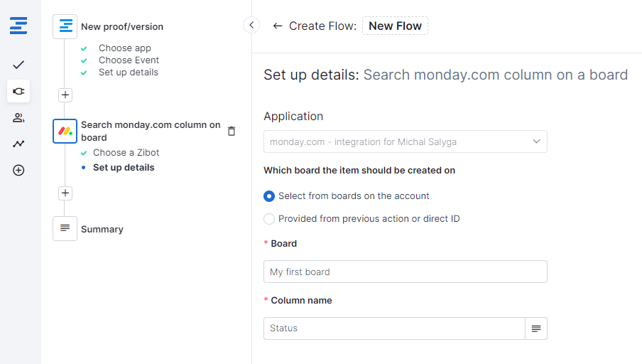 Update to Ziflow’s integration with Monday.com: search for, populate unique Column IDs