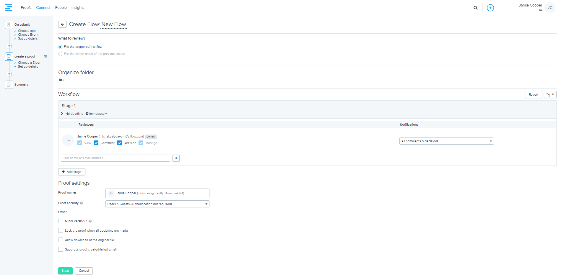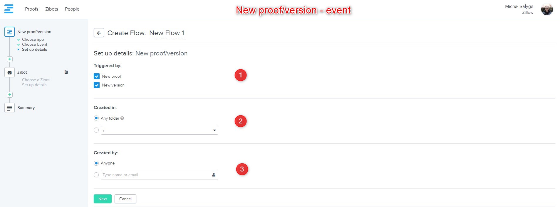 2. Created in - select the Ziflow folder that is going to be monitored by this flow.