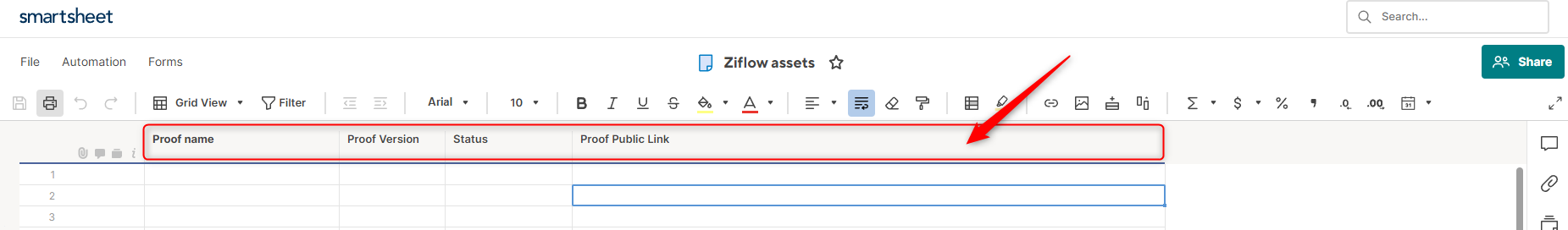 Another piece of information required to build a proper integration between Ziflow and Smartsheet is Column ID which will be also required to have both systems in sync.