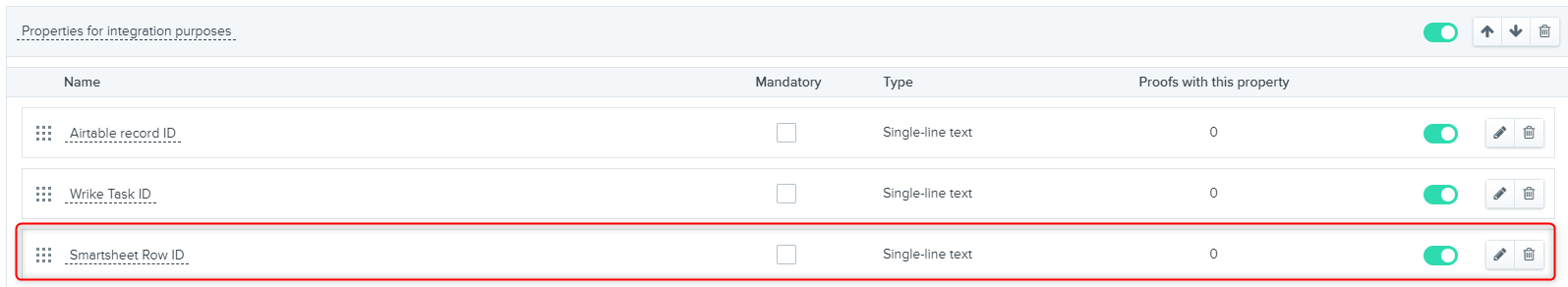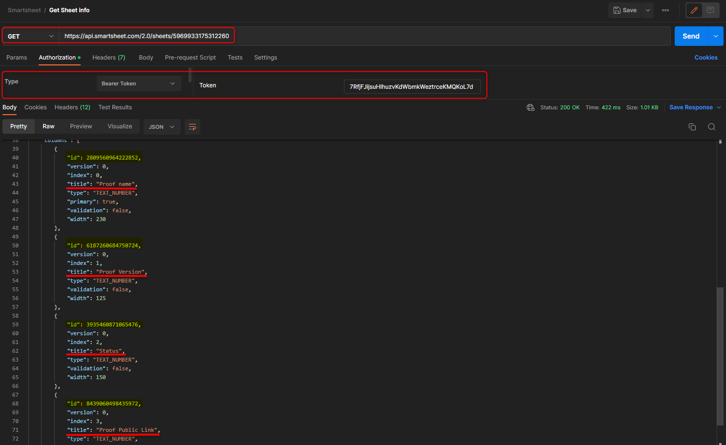 ]}]The following fields (proof_name_column_id, version_column_id, status_column_id, proof_public_url_column_id) should match fields existing IDs inside your Smartsheet columns.