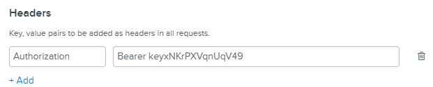 Headers - inside this section, please enter generated API key copied from your profile within Smartsheet.