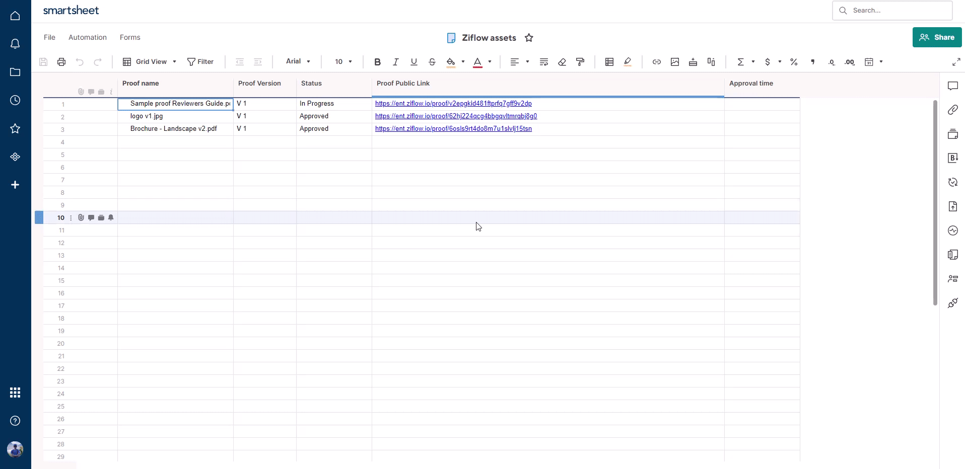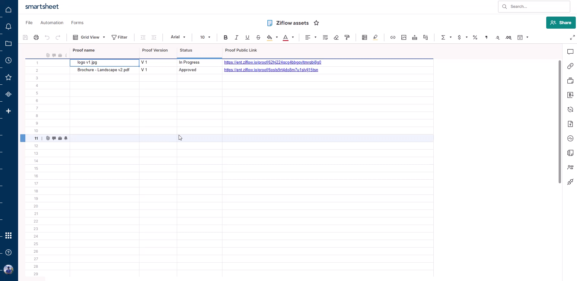 Summary: With our Smartsheet Webhook integration, you can extend your Ziflow online proofing operations to automatically create and update records. You'll see updates in Smartsheet in real-time - for new proofs, comments, decisions, and more. This will keep your team up to date in the tools they're already working with.