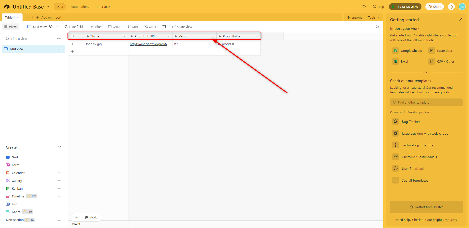 Test your flow by creating a sample proof in Ziflow (with the Airtable record ID entered in the custom property field) and verifying that the flow connected Ziflow proof details with the Airtable record.
