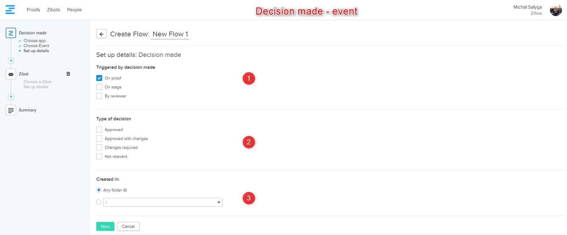 Created in - select the Ziflow folder that is going to be monitored by this flow.