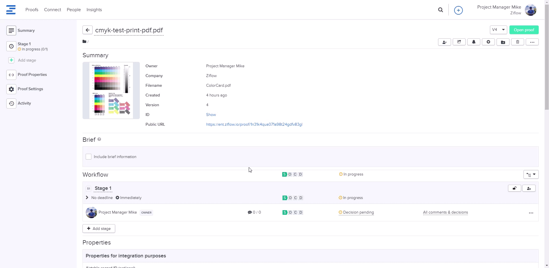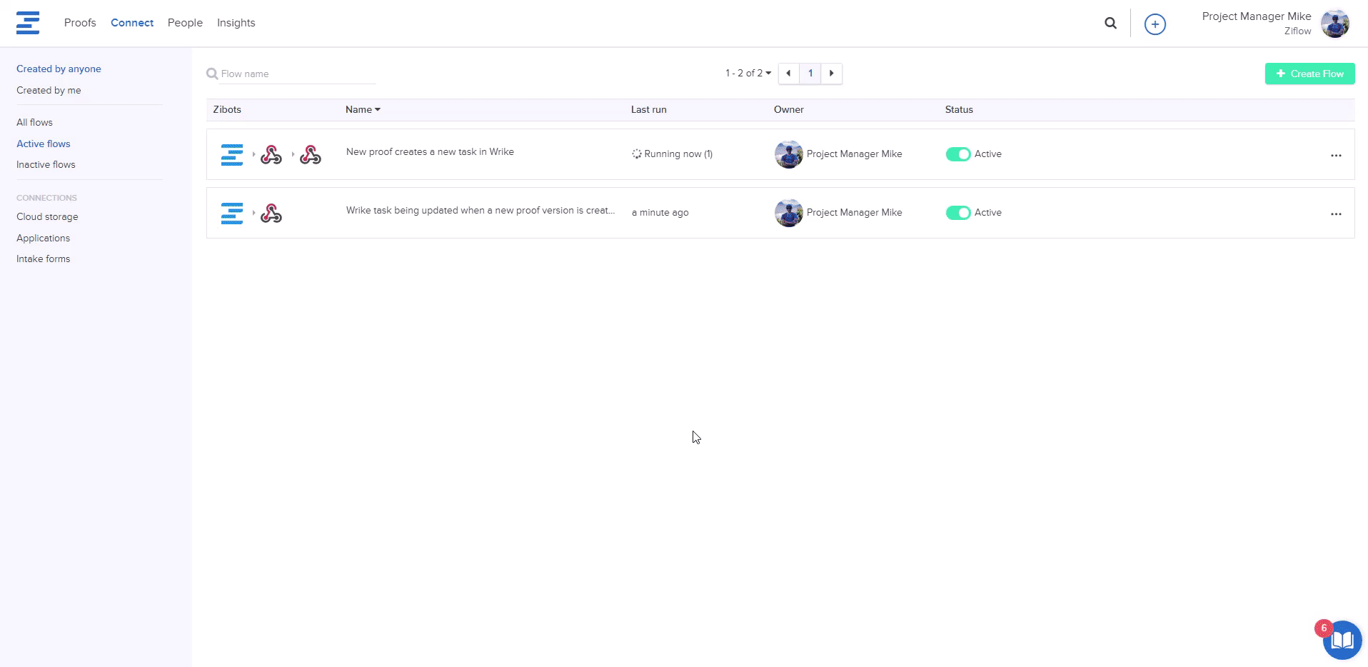 You can now test if the flow works correctly by creating a new proof version in Ziflow. The flow should send updated information to Wrike.
