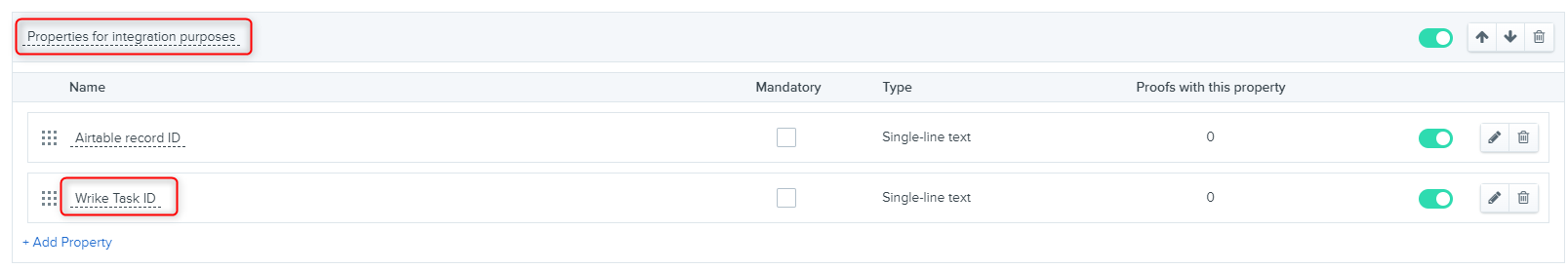 Before continuing with the next step, please create a custom property in Ziflow to hold this Wrike task ID information. This is how I named the property in Ziflow: