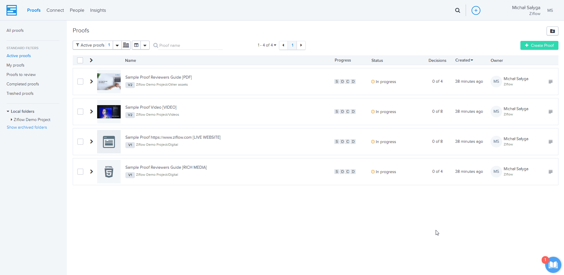 Start using Ziflow. Use the Resource Center tutorial in the bottom right corner to get acquainted with Ziflow's basic features.