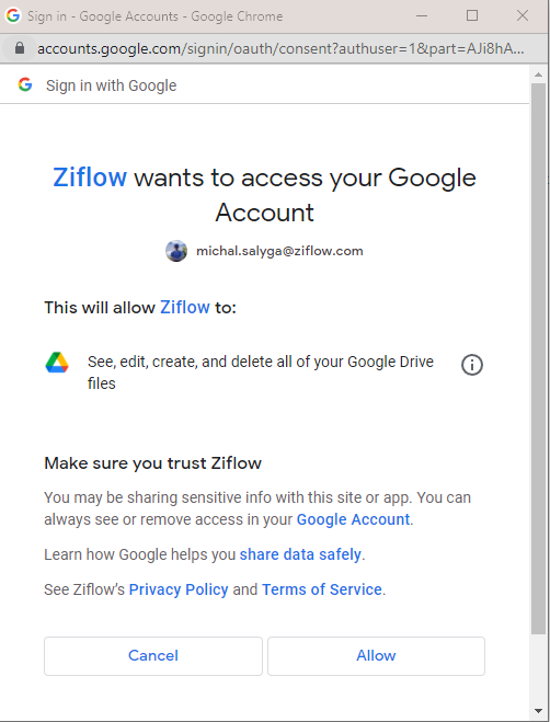 Allow Ziflow to access file in your Goggle Drive storage
