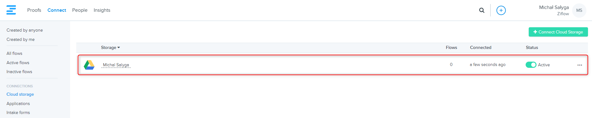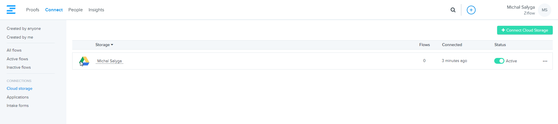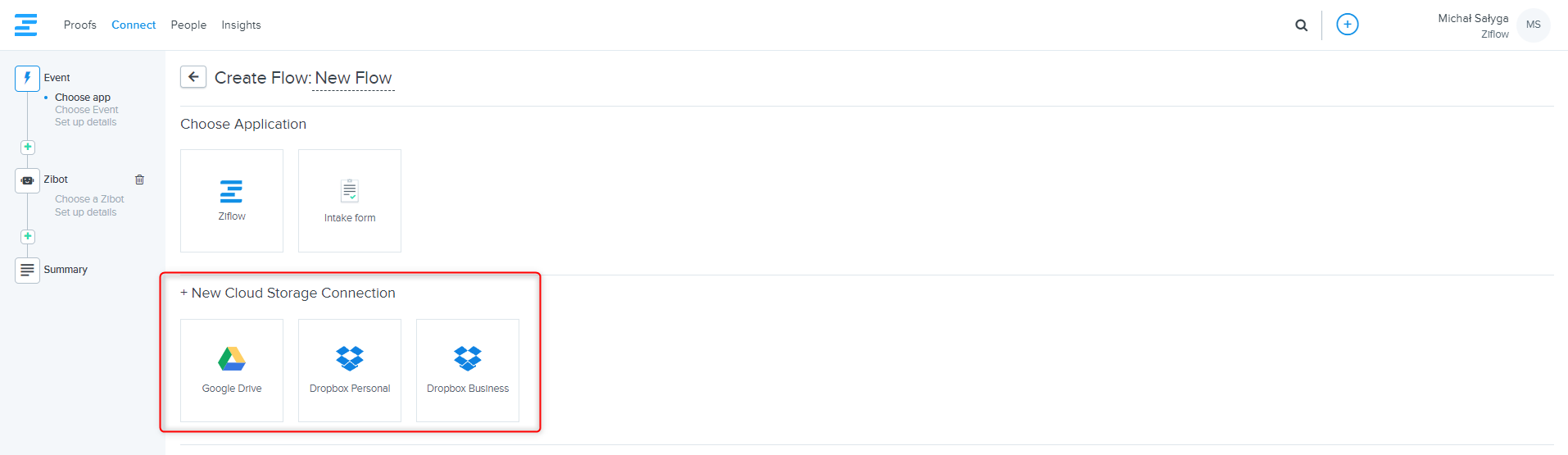 • Now you have added cloud storage to your Ziflow account, you can start using the workflow automation tools. Use the Zibots to build Flows to automate tasks.