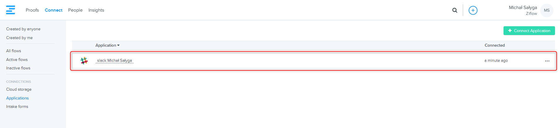 You’re done … you should now see your Slack connection under the Applications tab in the Connect area.