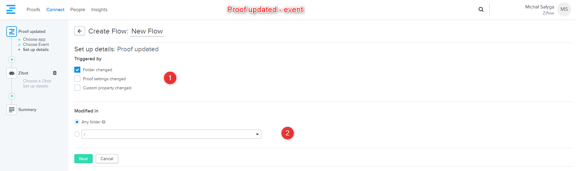 Created in - select the Ziflow folder that is going to be monitored by this flow.