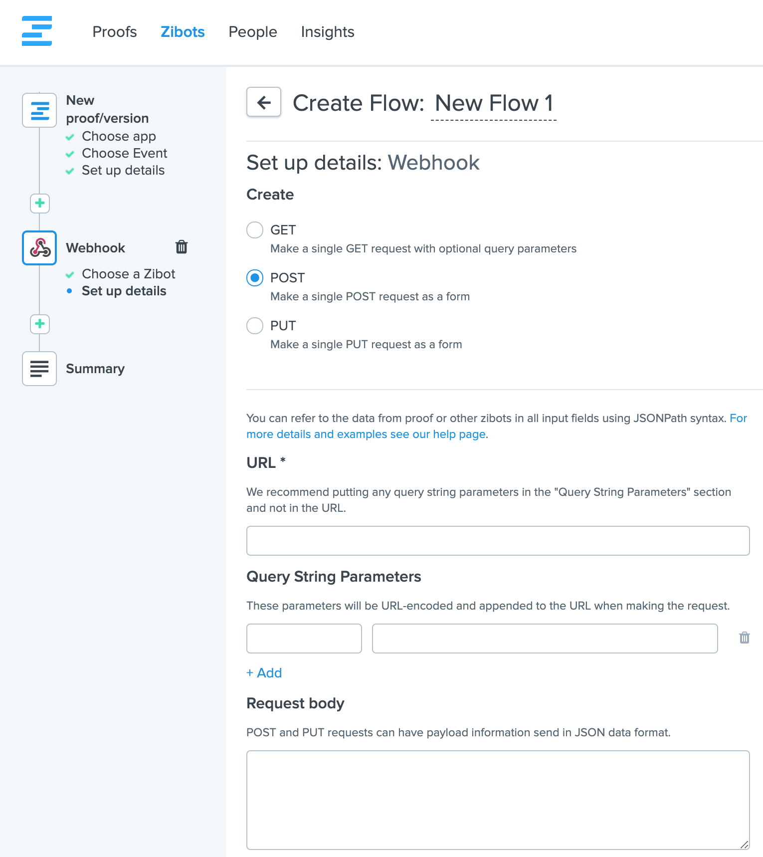 Our Webhook Zibot allows you to trigger a flow when the following events occur on a proof: