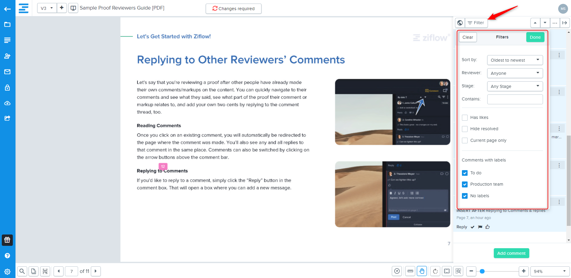 Summary: If a proof contains many comments, reviewers may want to use the filter feature to find specific comments quickly.