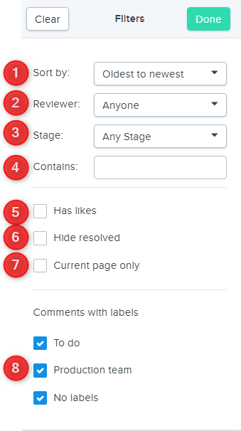 Available for: All reviewers that have been invited into the proof and approval process. Each reviewer can set their own filters.